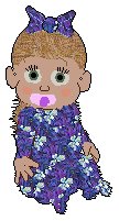 This is Savannah....She is a walker. She walks all around any room she is in. I cant keep her still. She loves to have her binky, and she loves to snack on animal crackers. Her favorite food is warm peas & warm carrots. She loves to drink soya milk. Savannah is my only vegetarian baby. Her favorite toy is the clown. She loves to play with the clown and make noises. She also loves the bubble machine. Her favorite sibling is our new baby Leighannah. She sleeps beside her and they play together in the playroom all the time. |